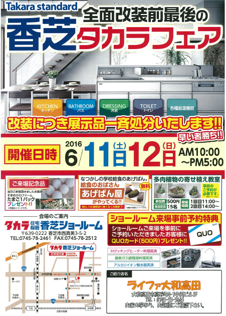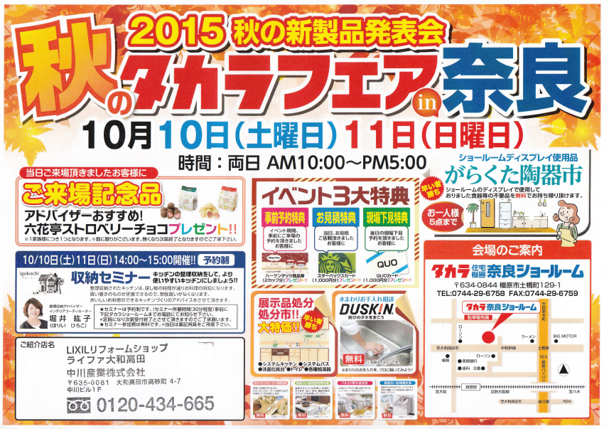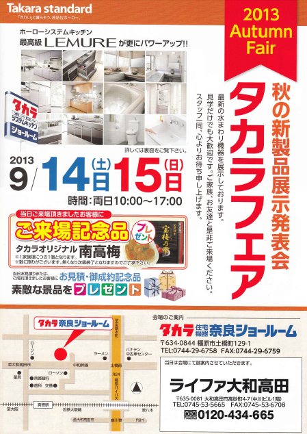 場所 タカラ奈良ショールーム(橿原市土橋町129-1)